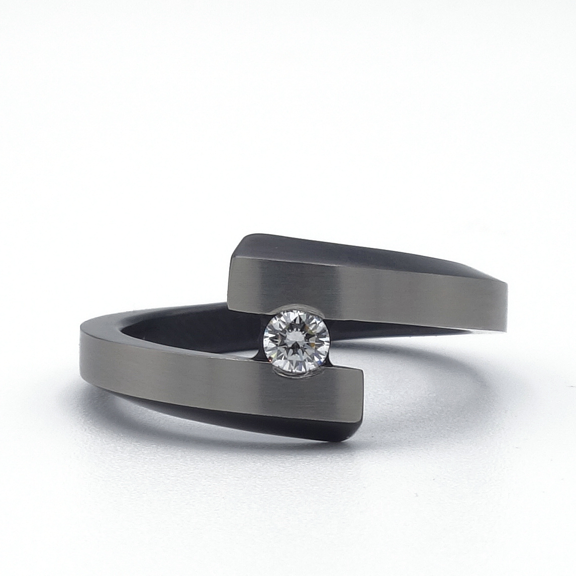 Ring met een bijzondere vorm. De schuine zijkanten geven een verrassend effect.