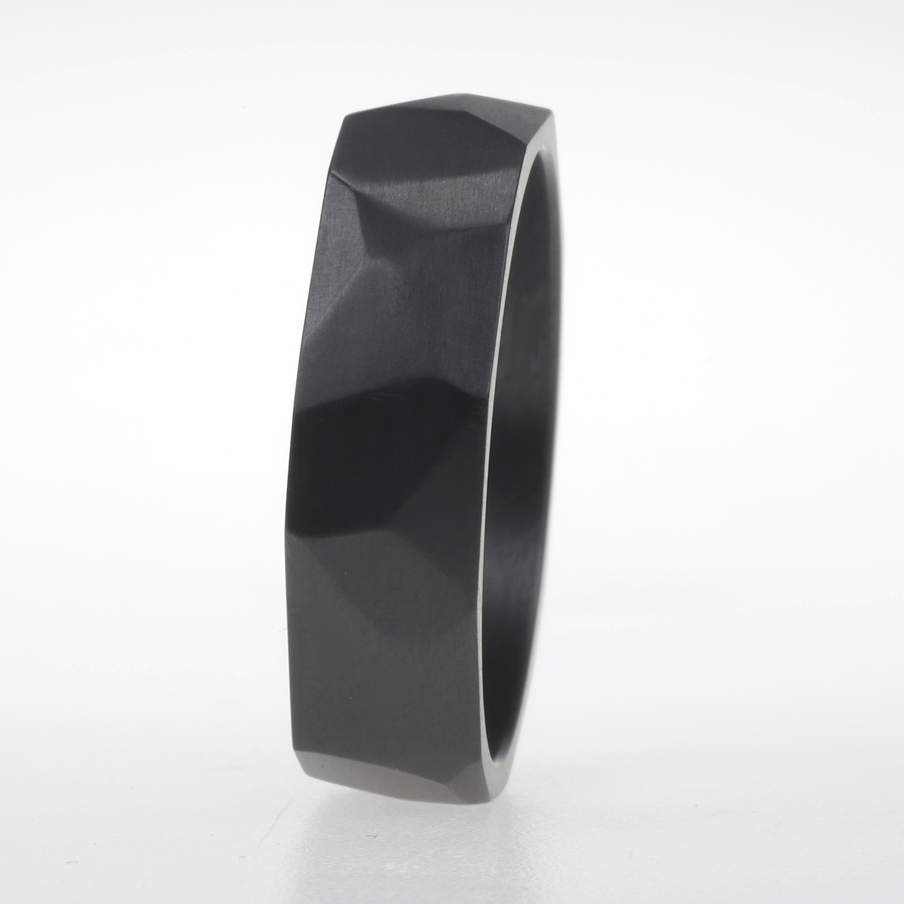 Stoere zirkonium ring met grove structuur. Afwisselende vlakken. Ook uitermate geschikt als duimring.